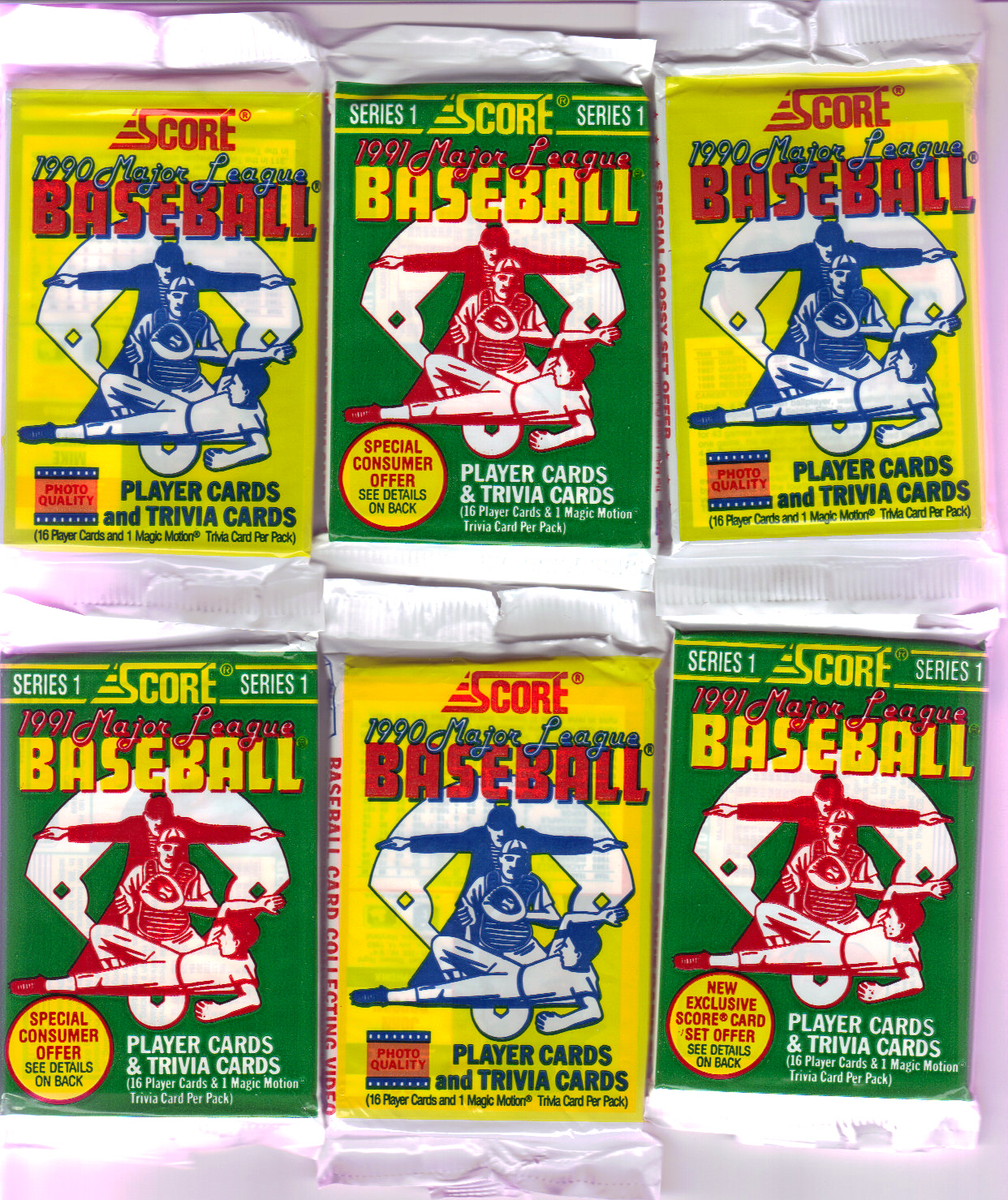 In total I got 5 packs of 1990 Score and 4 packs of 1991 Series 1 Score Baseball. He said they were 25 cents each, so why not.