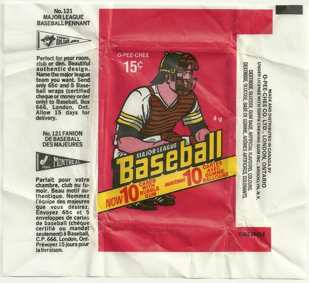 I love the French on the wrapper- it makes baseball cards seem so fancy! I wonder what the exchange rate made 15 cents CD worth in 1978…
